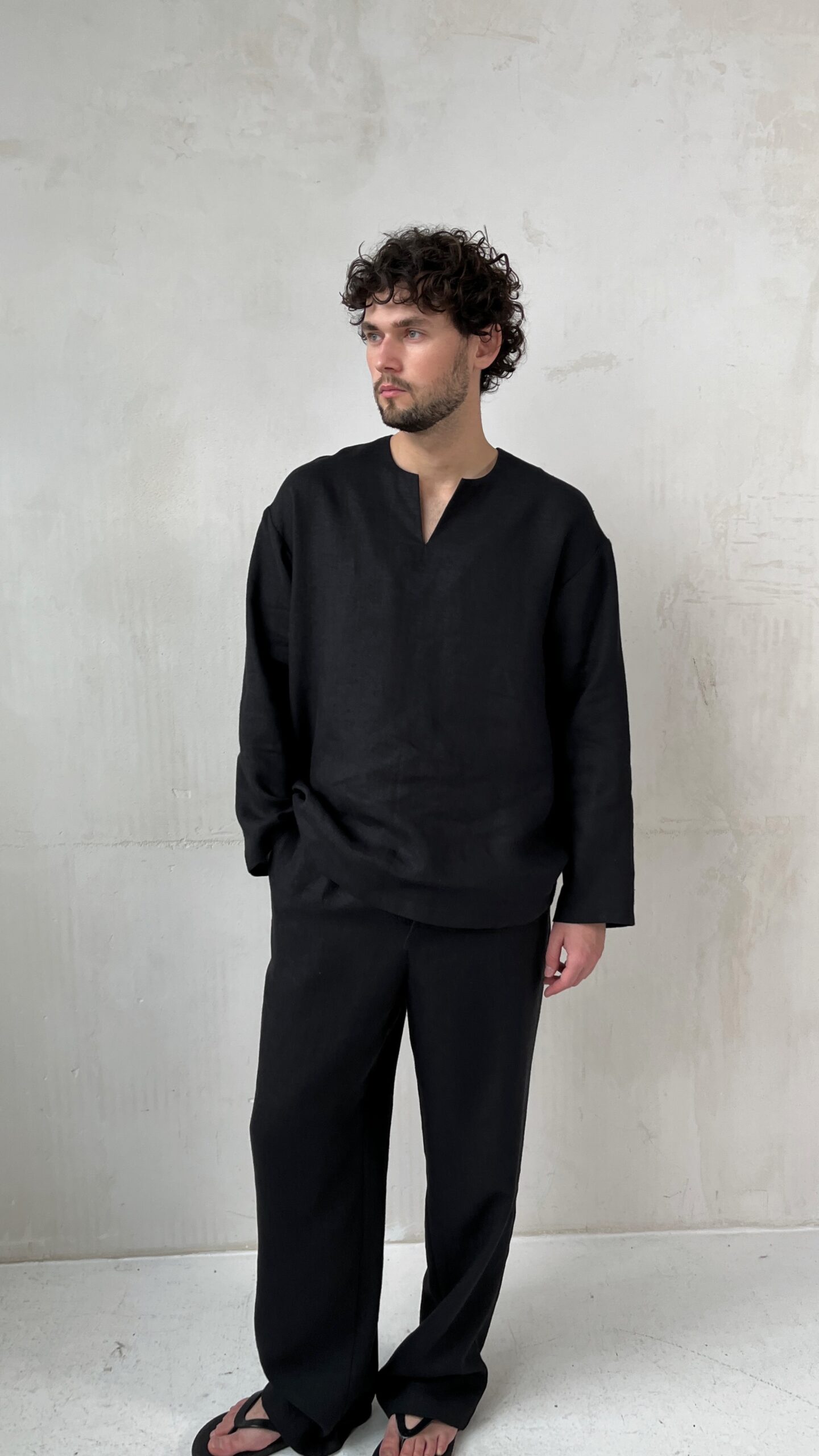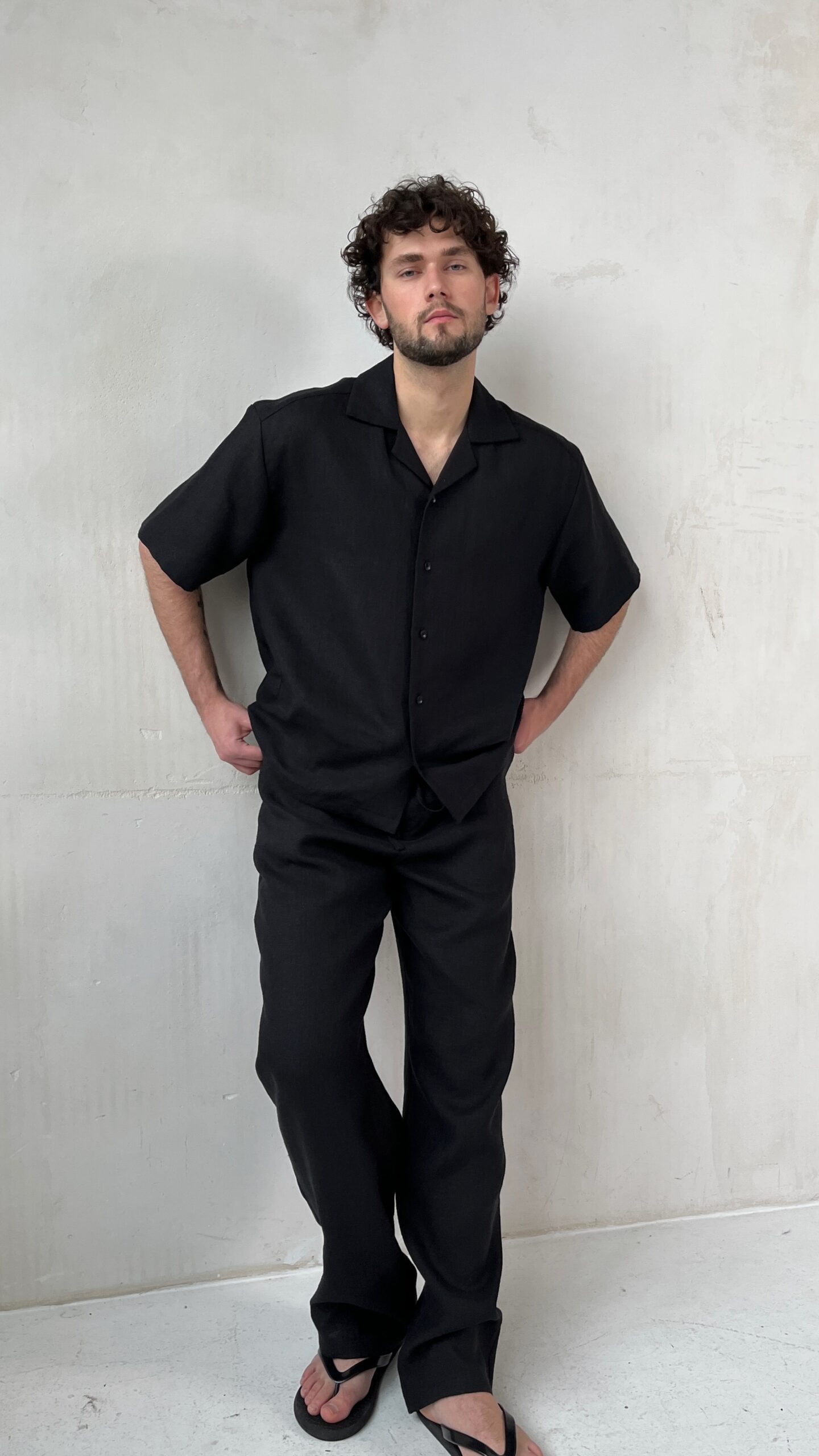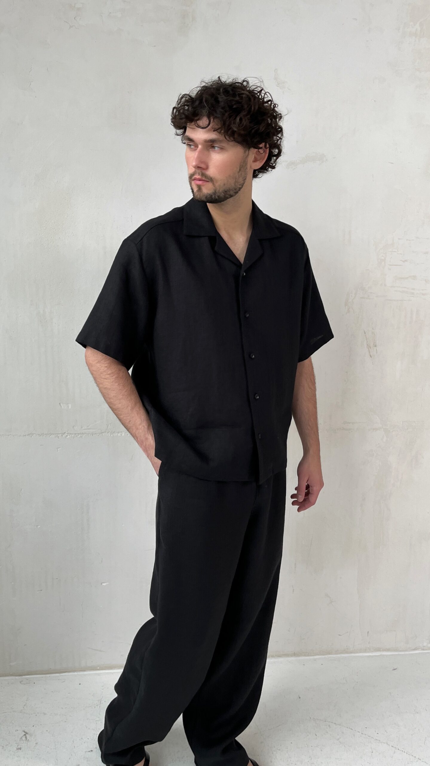 Глубокий черный цвет делает модель универсальной: такие льняные брюки легко сочетать с футболками, базовыми рубашками, худи или пиджаком, создавая как расслабленные, так и более собранные образы. Черные льняные брюки подойдут для города, путешествий, отдыха и прогулок, оставаясь практичными, немаркими и стильными.