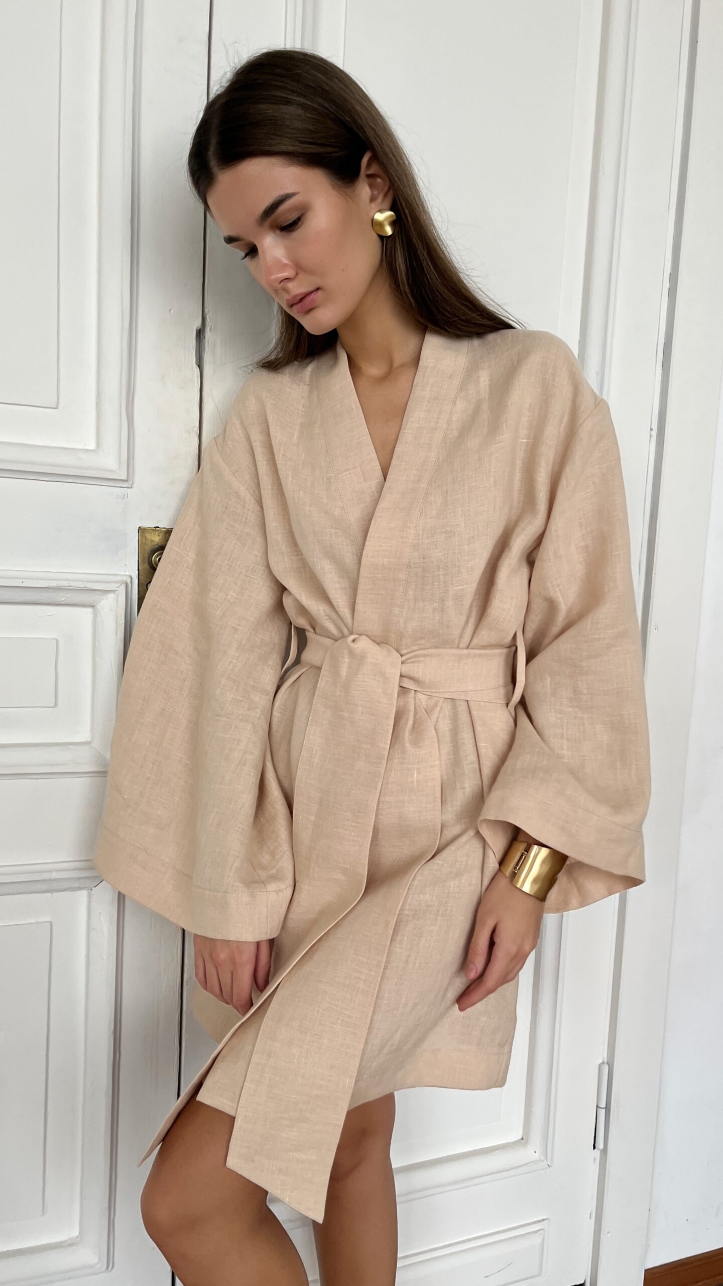 Кимоно халат женский из 100% премиум льна в длине мини.