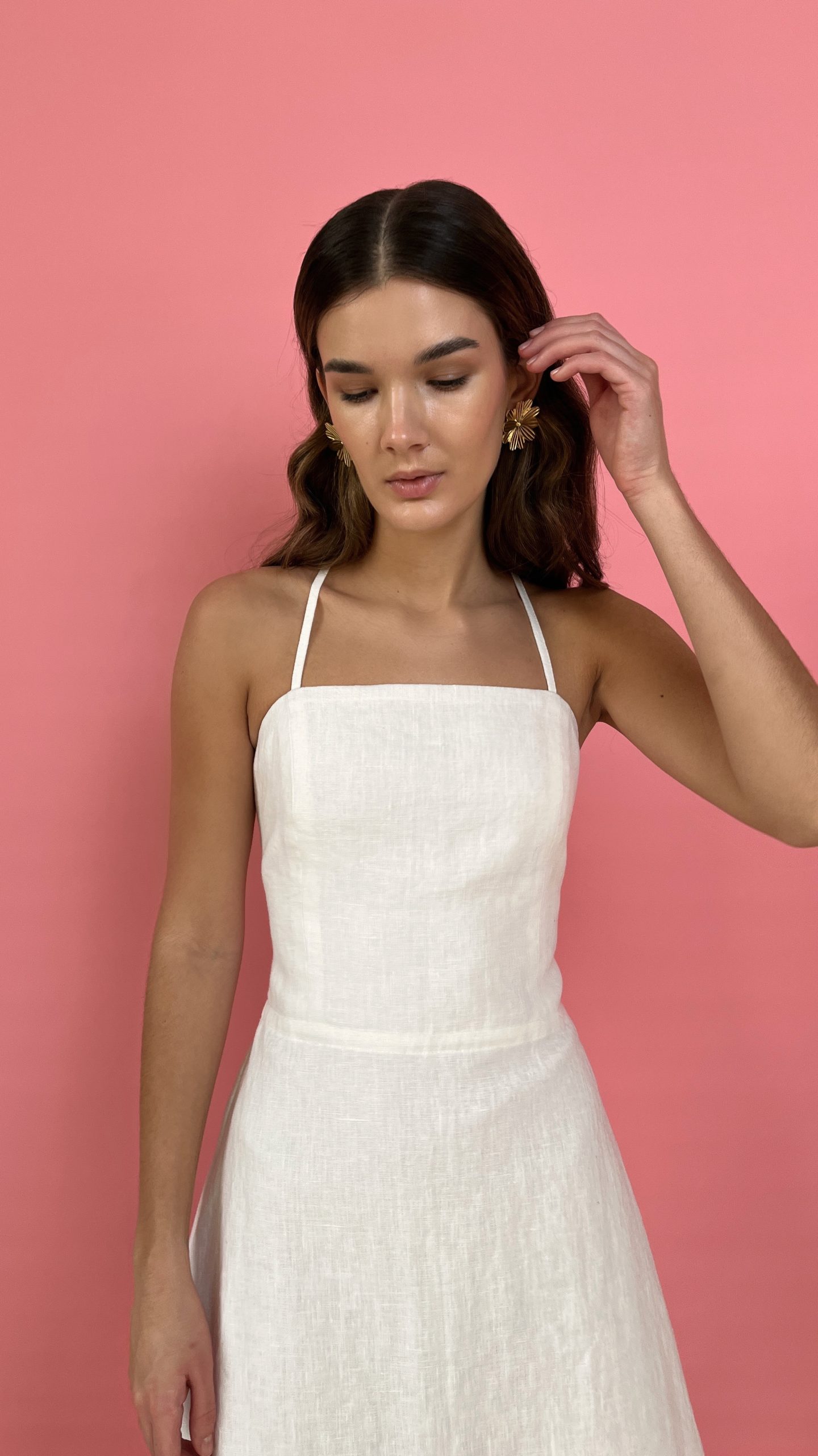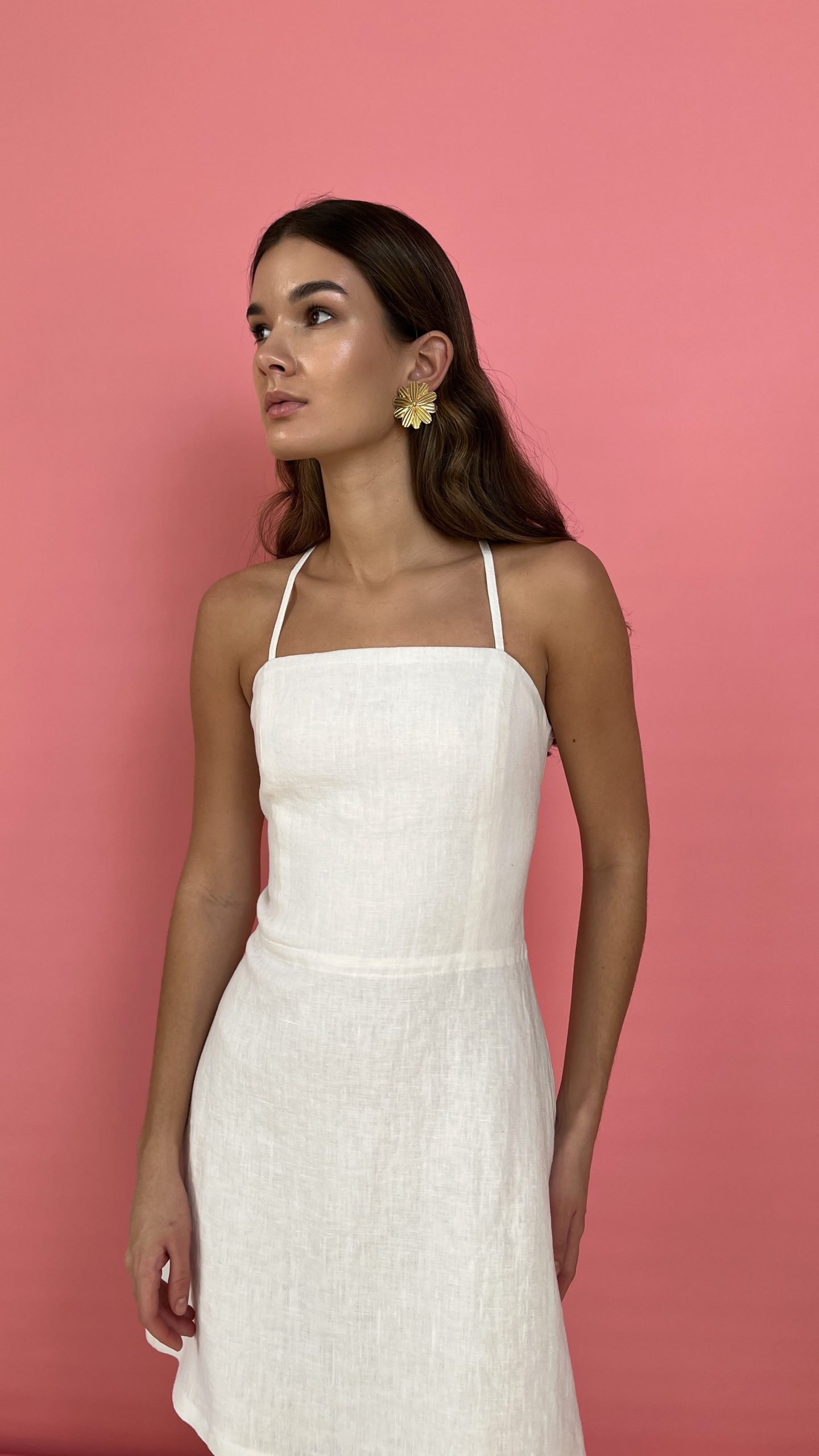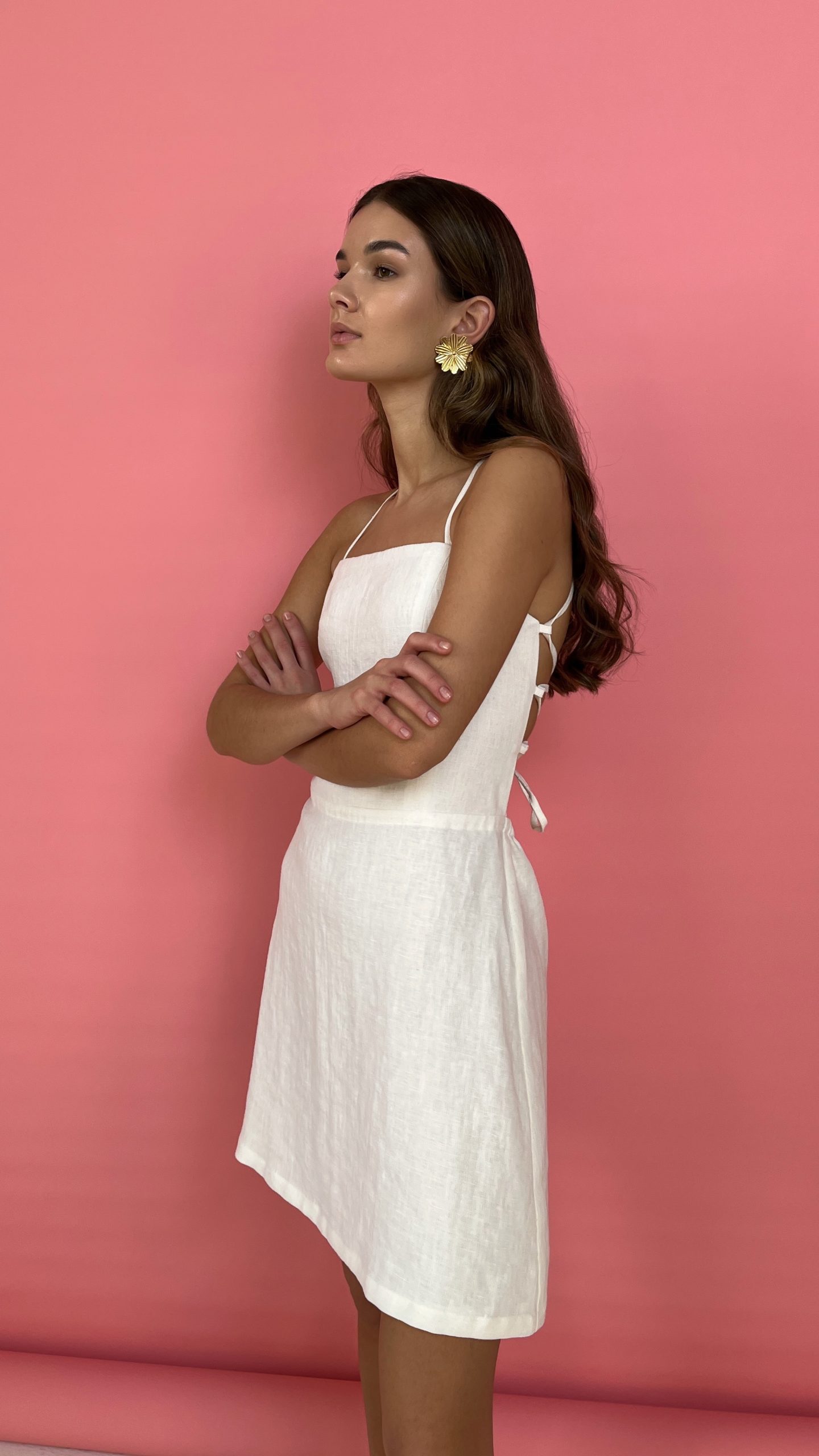 Льняное платье мини WHITE