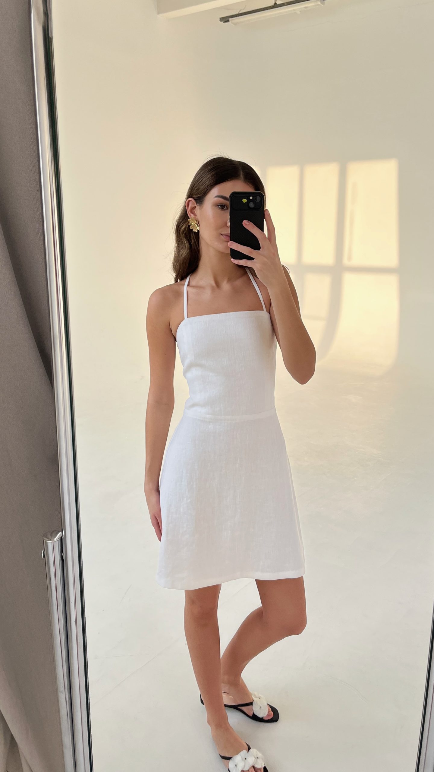Белое короткое льняное платье с открытой спиной из мягкого 100% премиум льна.