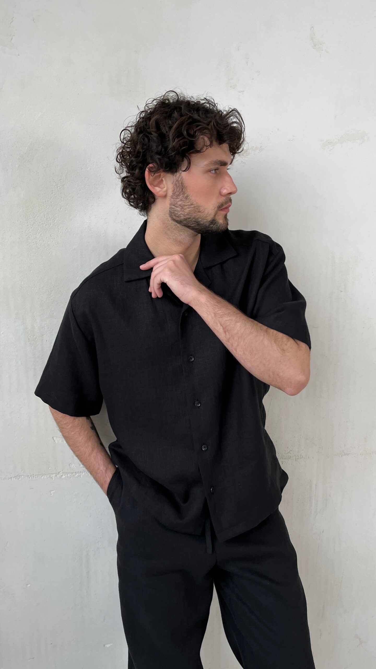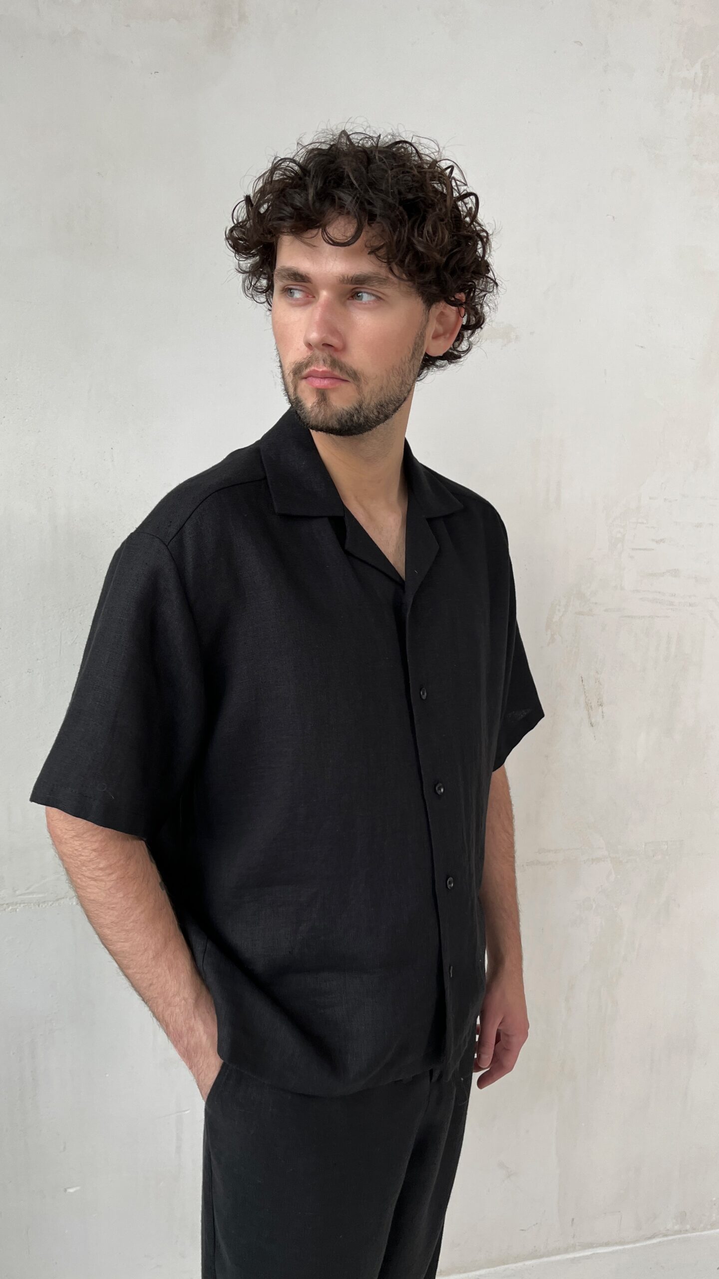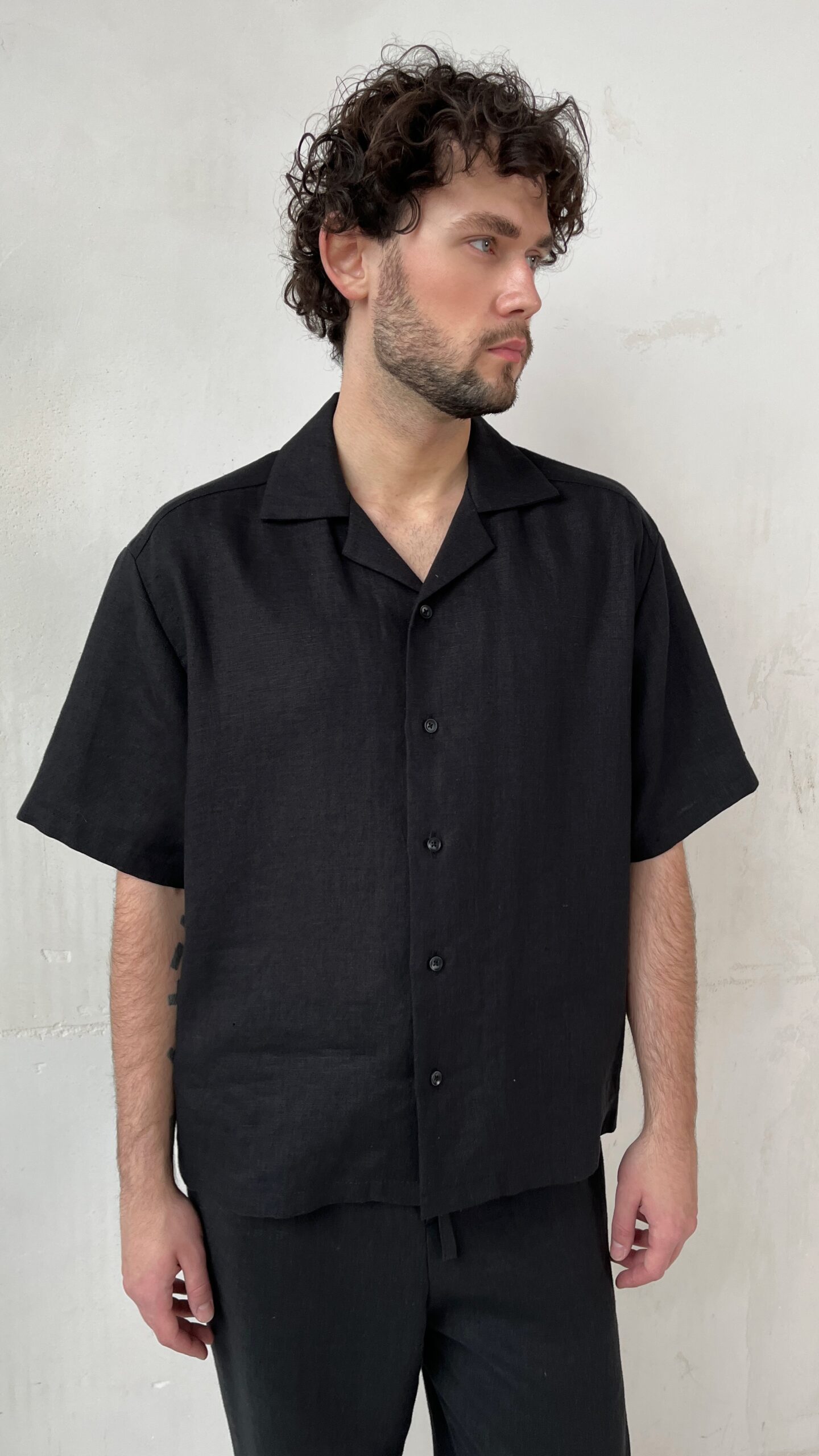 Рубашка льняная с коротким рукавом BLACK