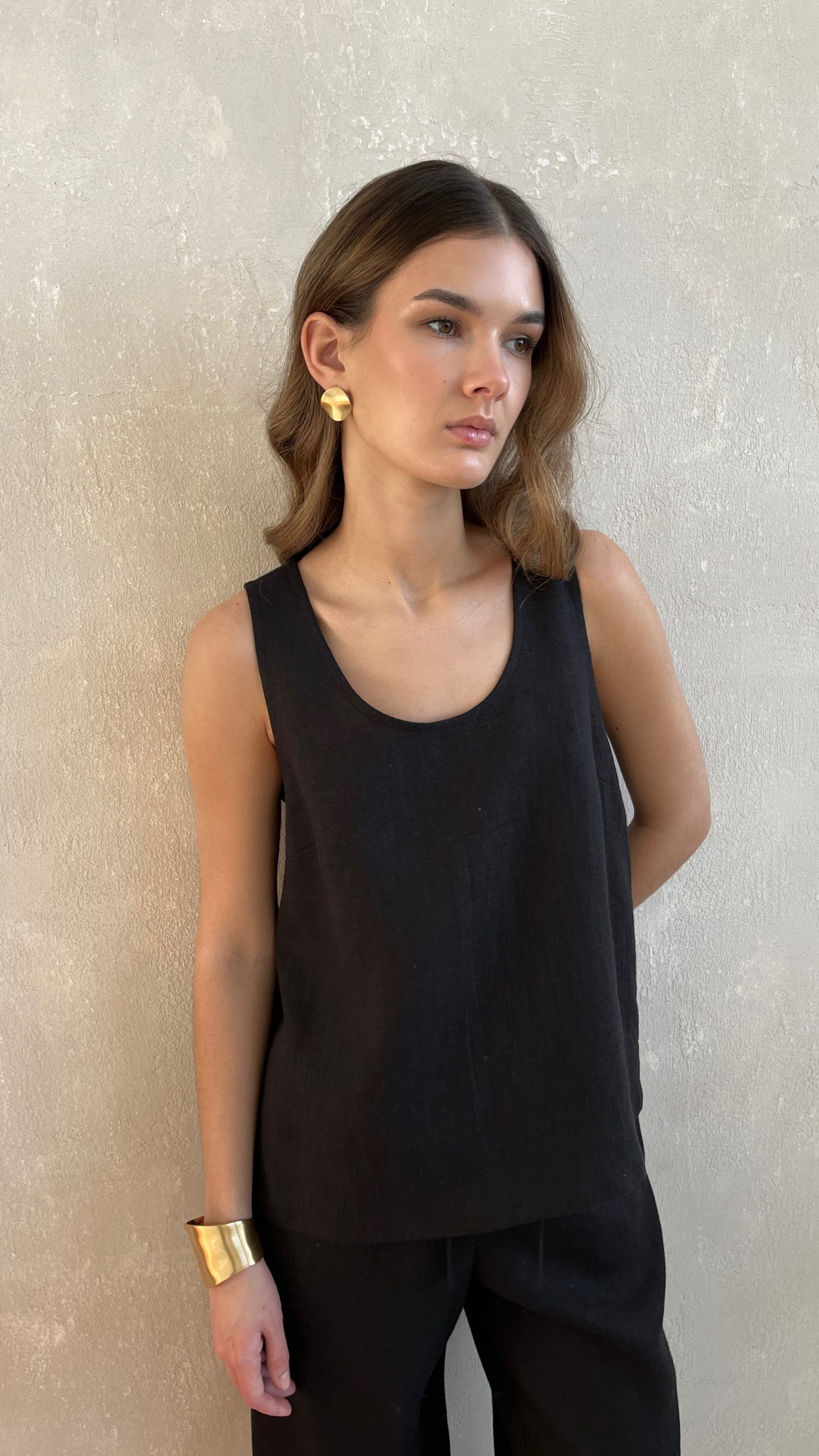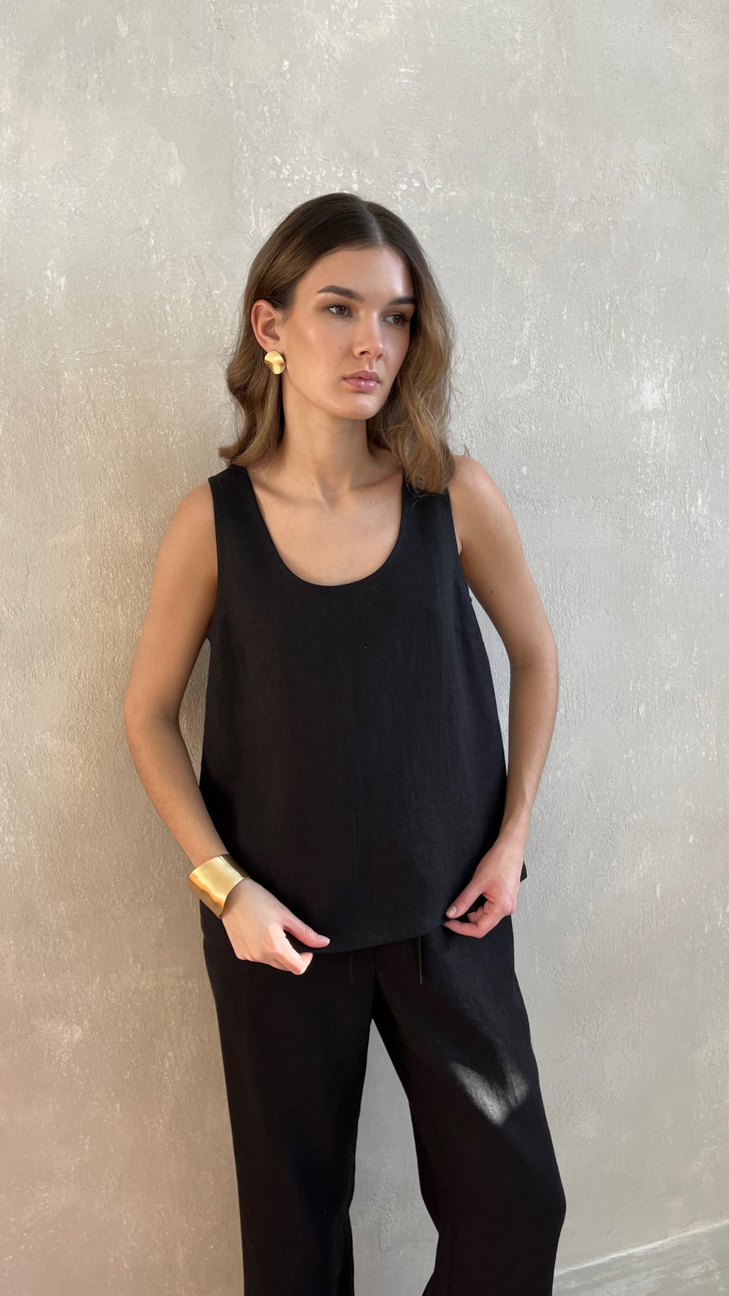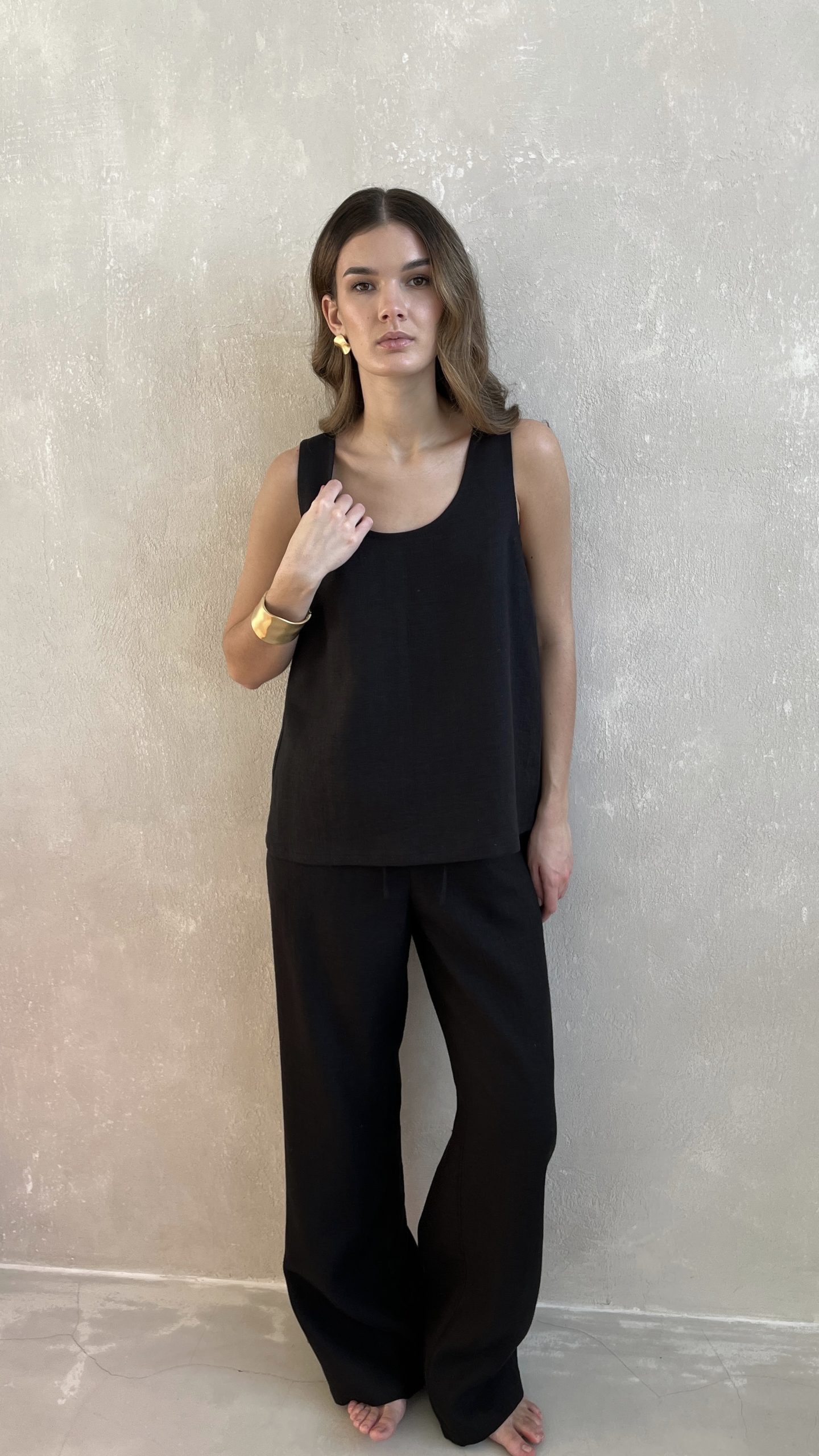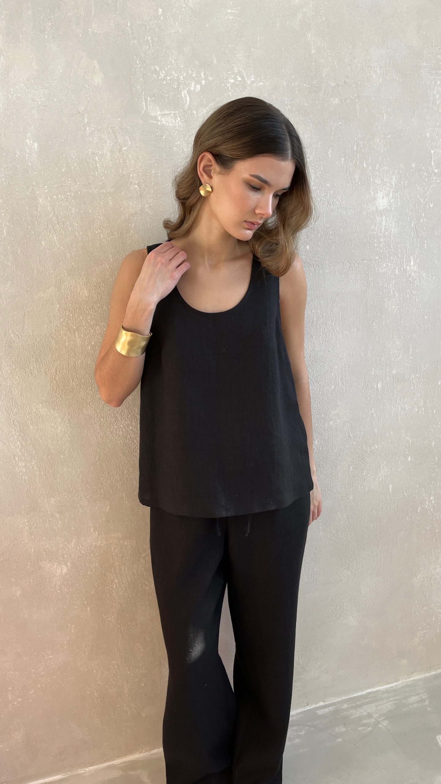 Майка из 100% умягченного льна на широких бретелях.