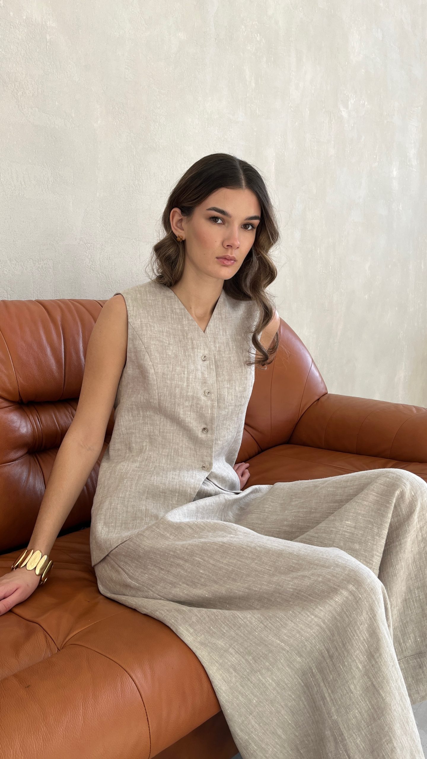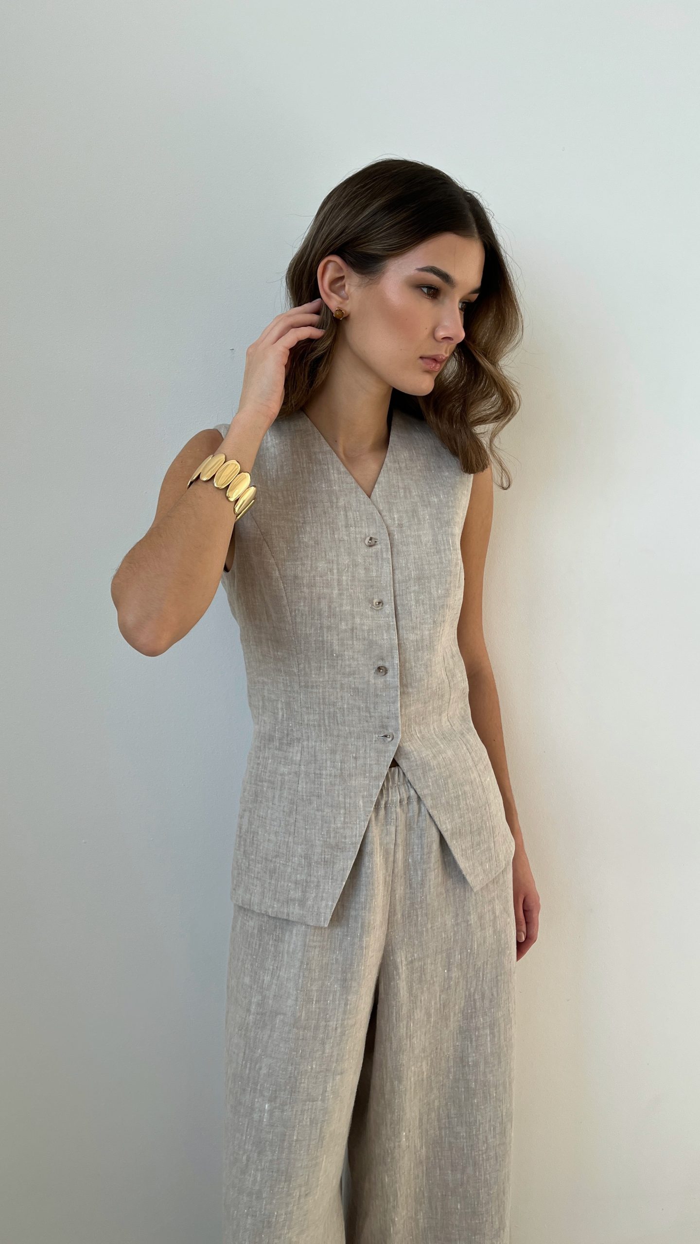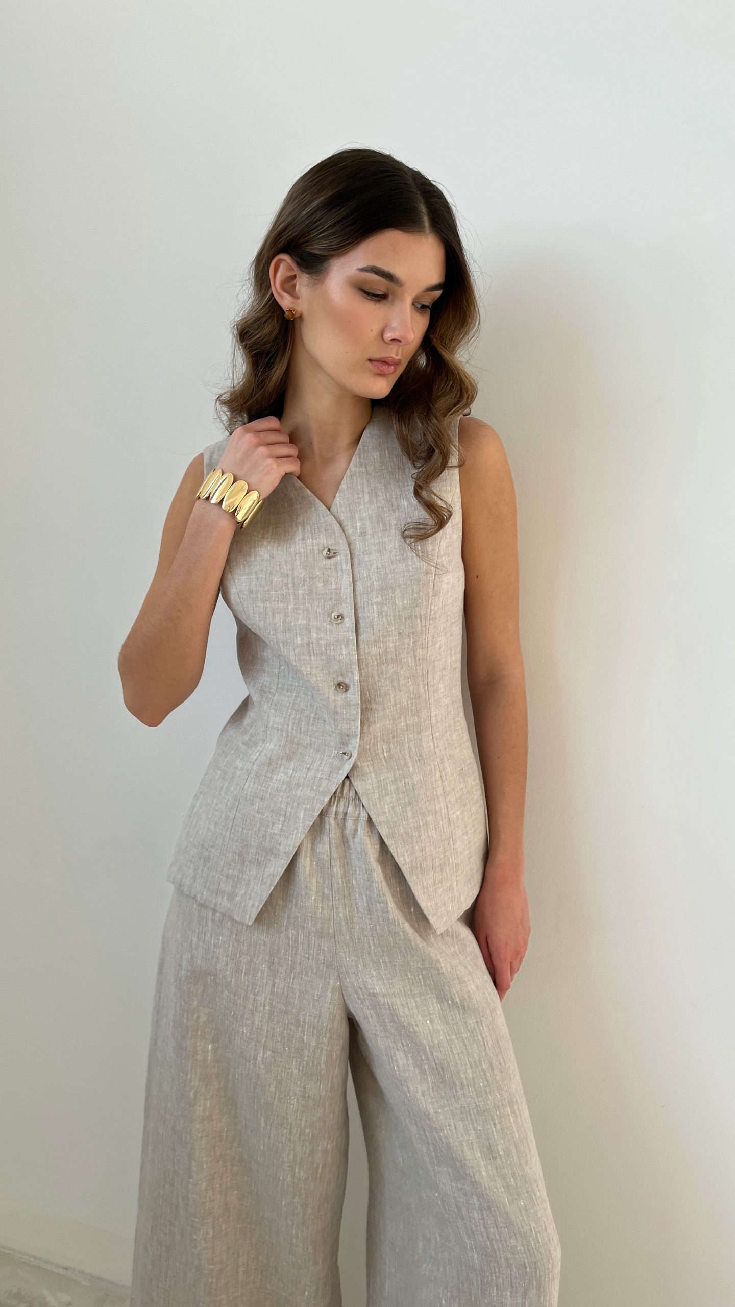 Женский летний удлиненный жилет из 100% премиального льна.